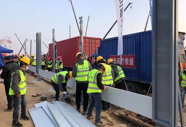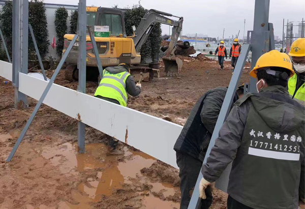 雷神山围挡安装现场